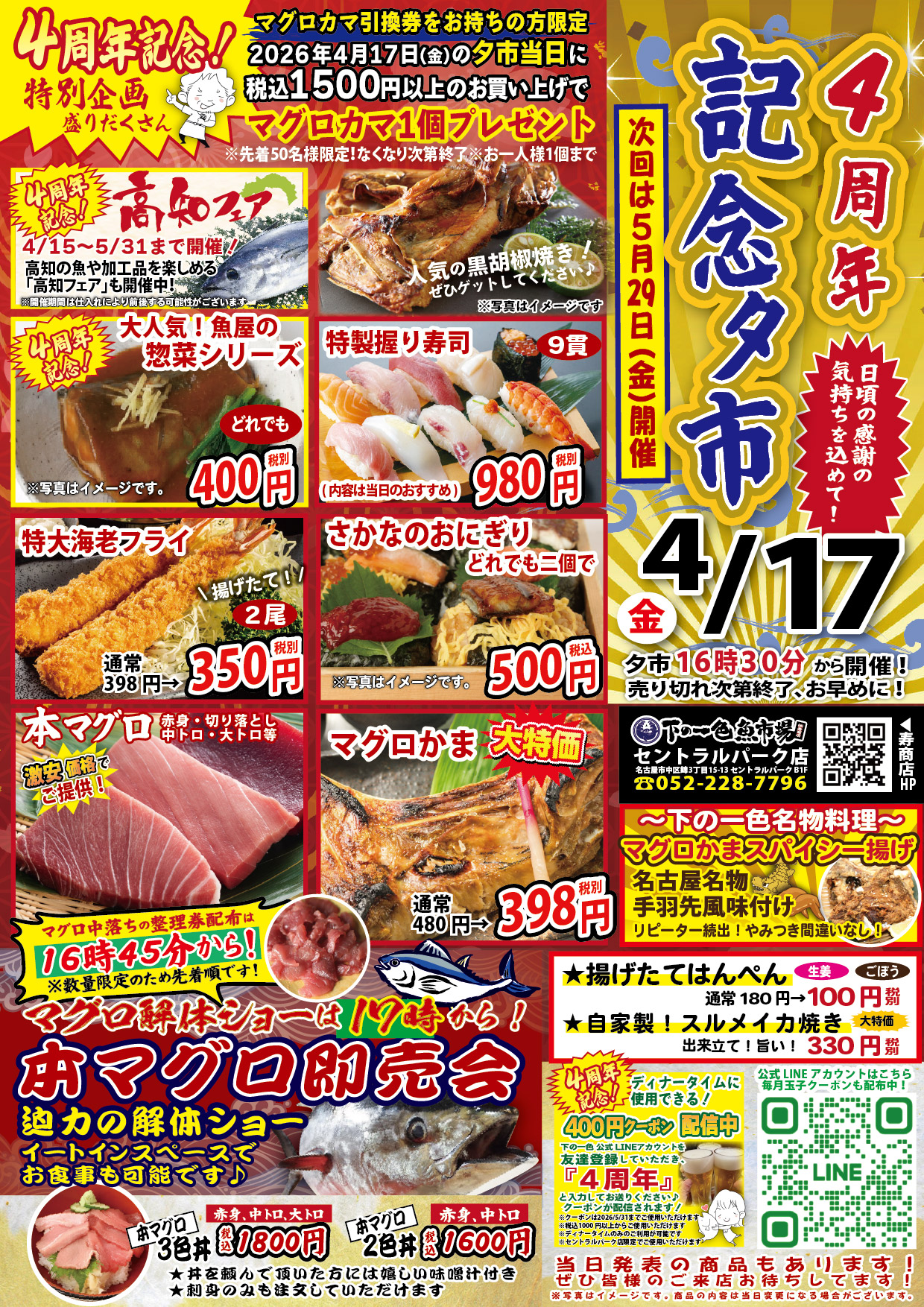 【4周年記念夕市】2026.4.17(金)下の一色魚市場・セントラルパーク店