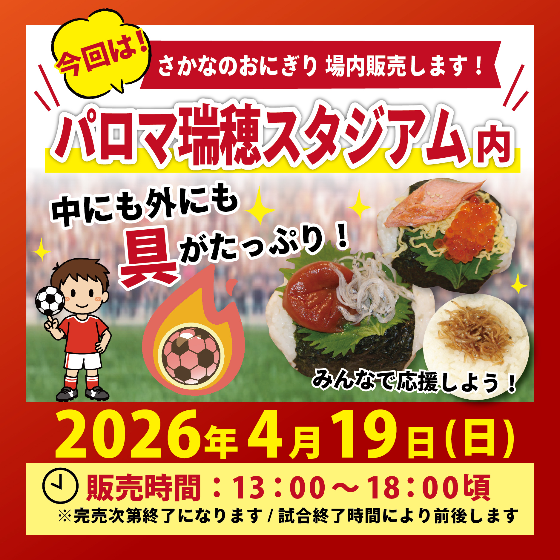 ※売り切れ次第終了※販売終了時間は試合により前後します。